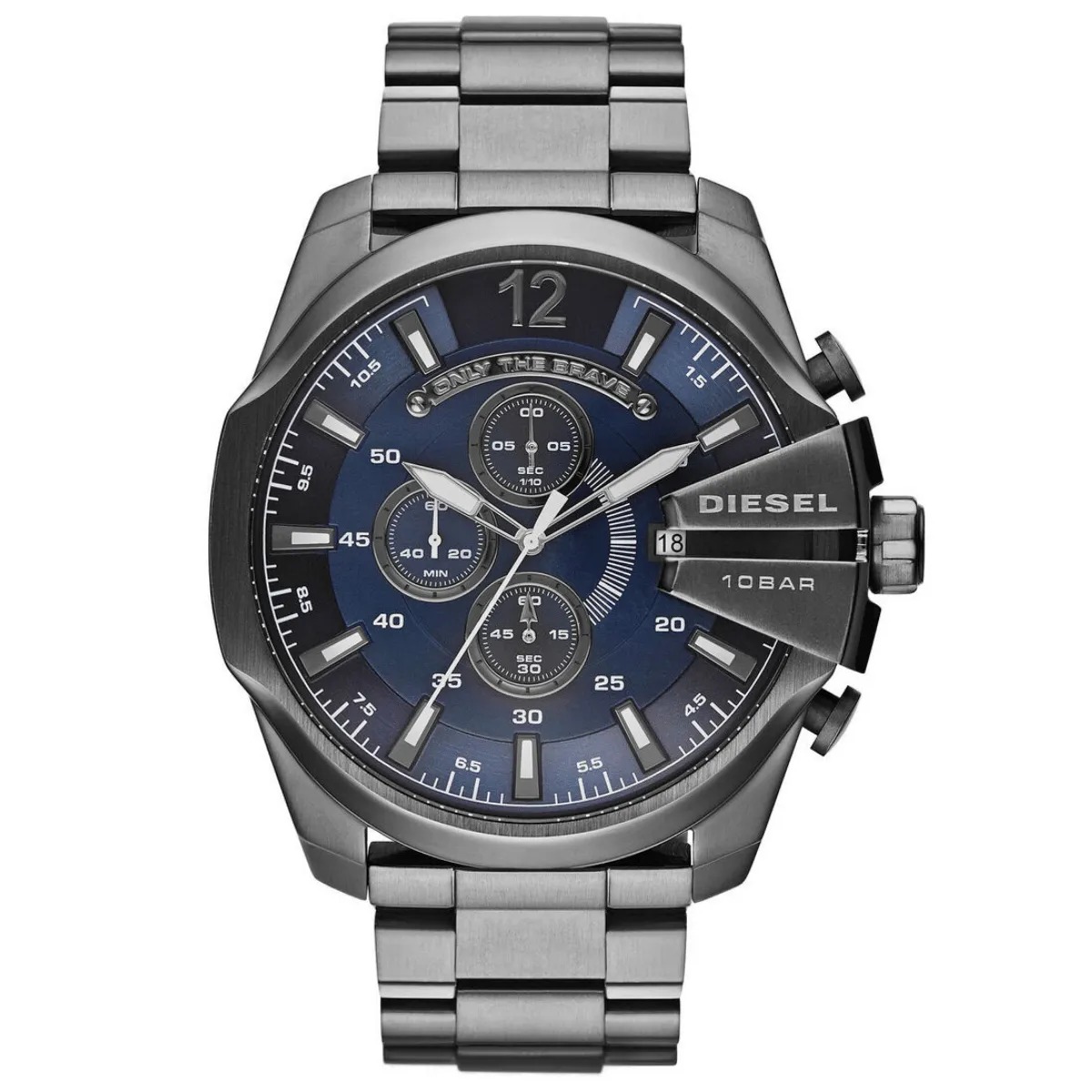 Fabricado em aço inoxidável de alta resistência, o relógio conta com caixa robusta de 57mm e pulseira em aço prateado, transmitindo força e sofisticação ao mesmo tempo. Seu mostrador preto com detalhes em branco e prateado garante excelente legibilidade, além de destacar a identidade única da linha Mega Chief da Diesel.